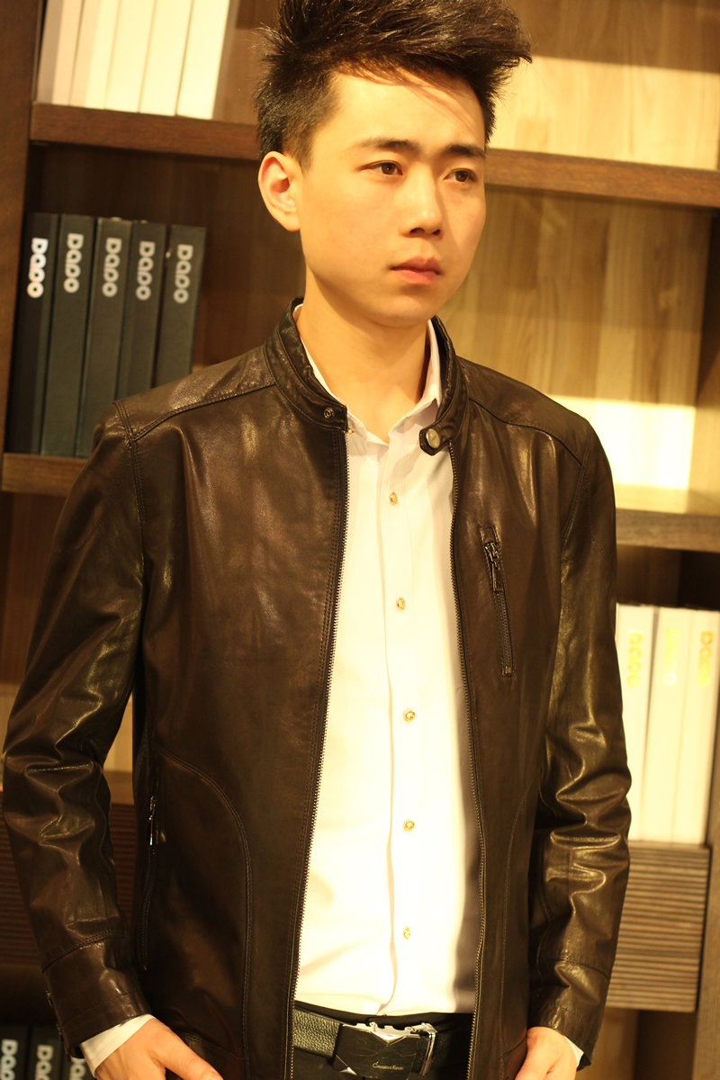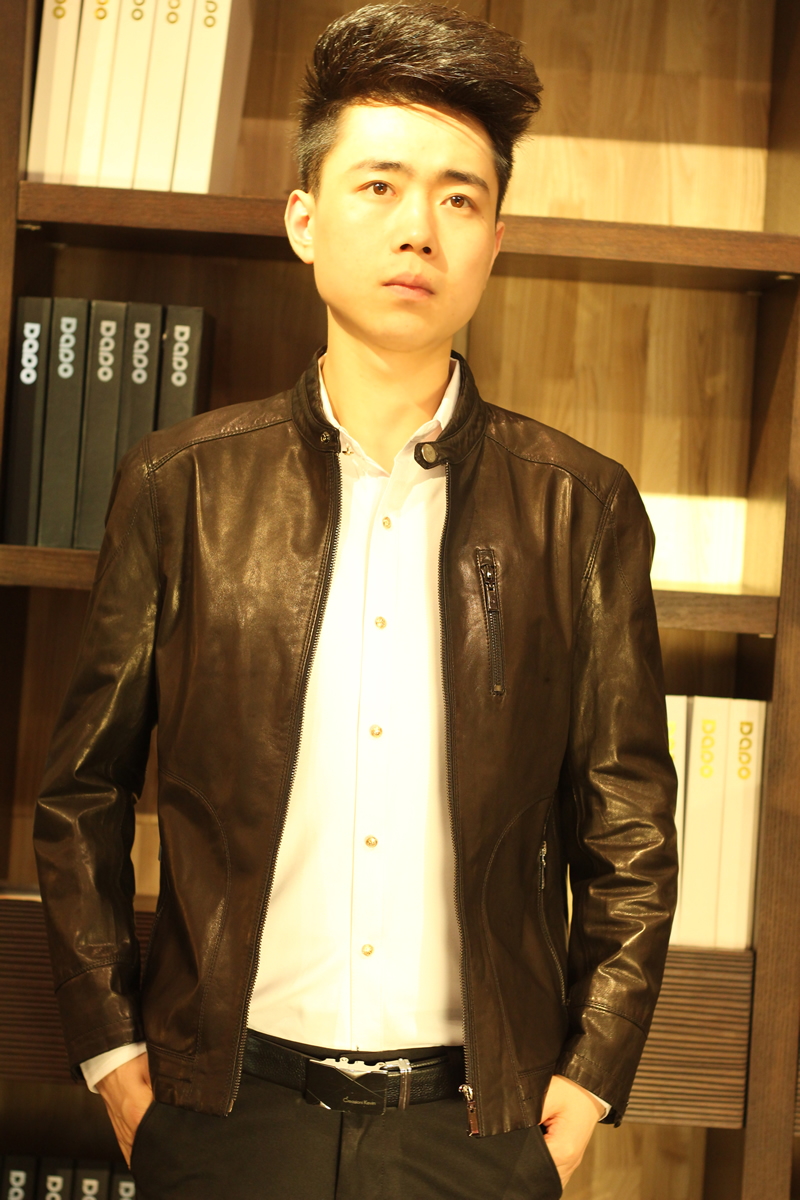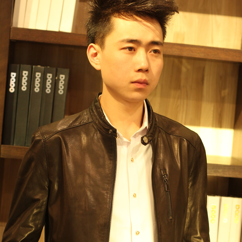 戈弟 黑色山羊皮真皮夹克