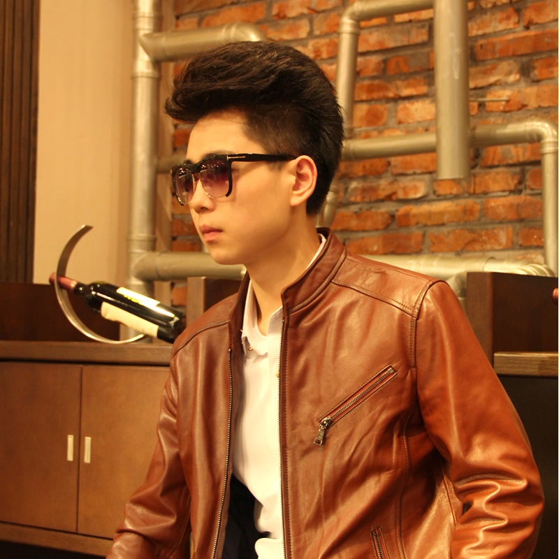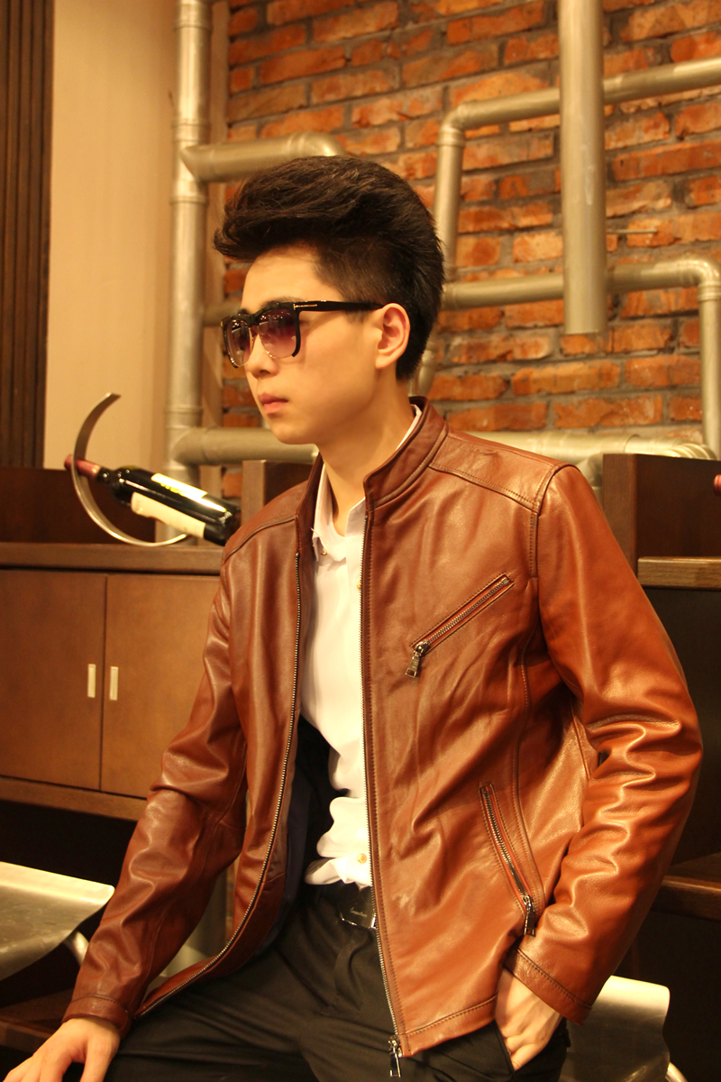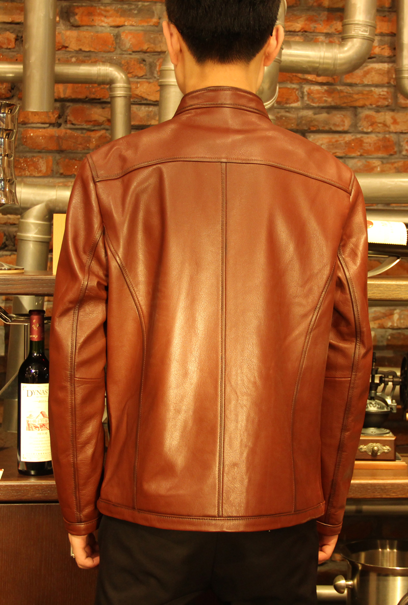戈弟 牛血红牛皮真皮夹克皮衣